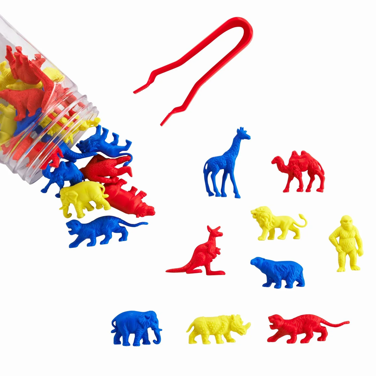 Uw kind zal graag zijn fantasie gebruiken om een safariscène te creëren met deze 30-delige set beren, kamelen, olifanten, giraffen, gorilla's, nijlpaarden, kangoeroes, leeuwen, neushoorns en tijgers.